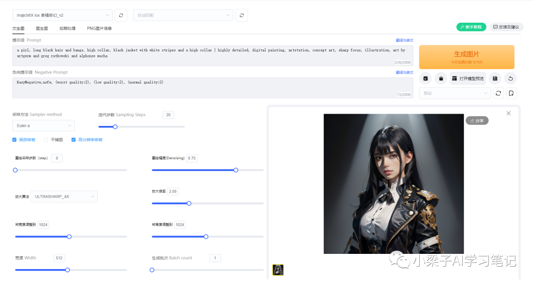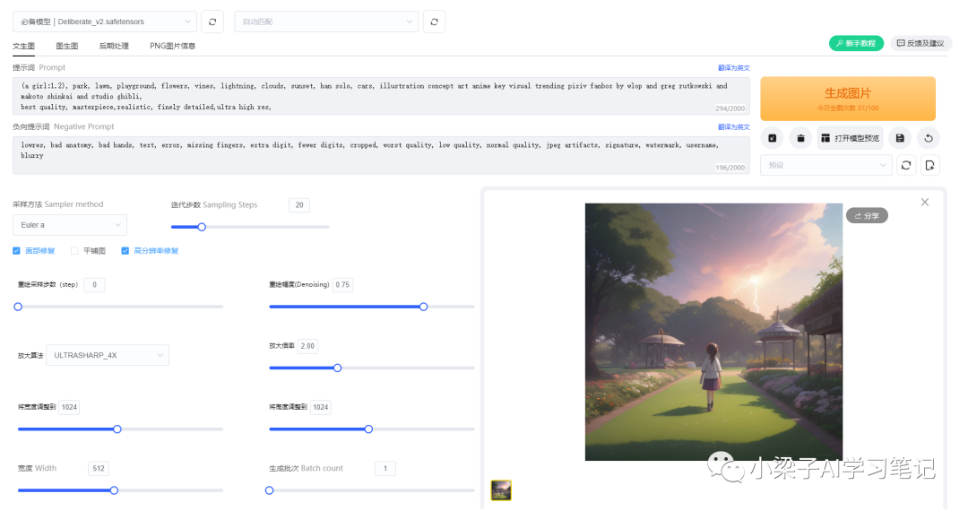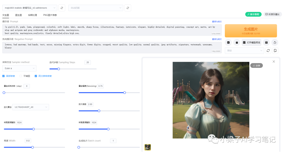 我们测试一下生成提示词的出图效果。在LiblibAi在线SD工具下面验证一下。