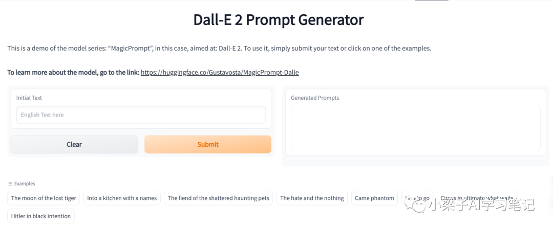 DellE地址:https://huggingface.co/spaces/Gustavosta/MagicPrompt-Dalle