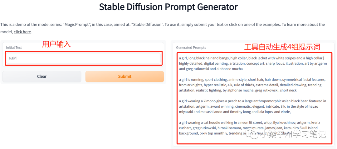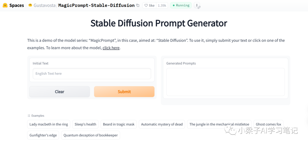 网址:https://huggingface.co/spaces/Gustavosta/MagicPrompt-Stable-Diffusion。