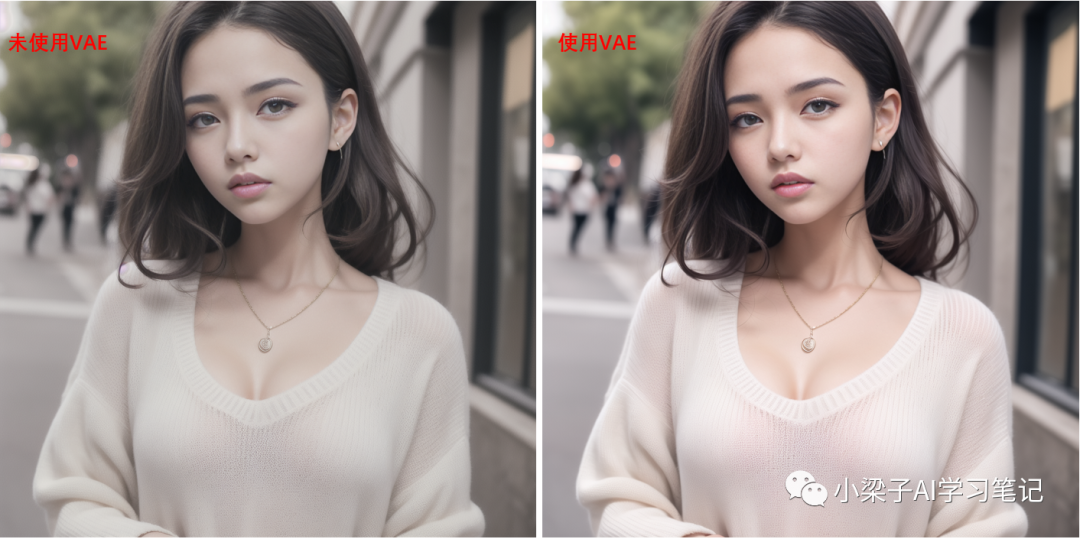 下面我们以一个例子来看一下在使用和没使用VAE模型最终生成图片的区别。