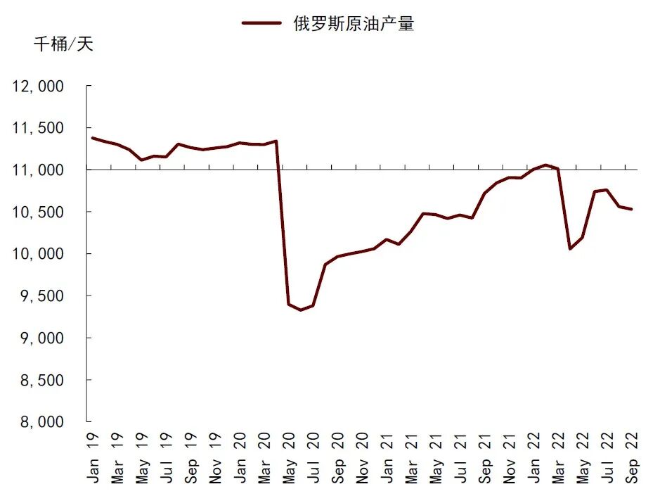 图表:俄罗斯原油产量已受到一定影响