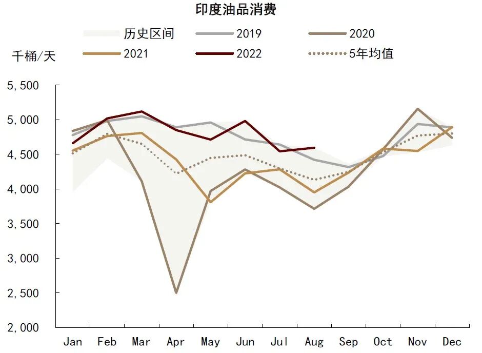 图表:印度石油需求处于历史同期最高水平