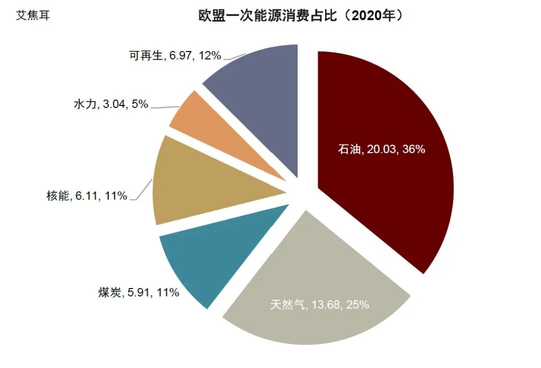 图表: 2020年欧盟一次能源中可再生能源消费(包括水力)中的占比约为18%