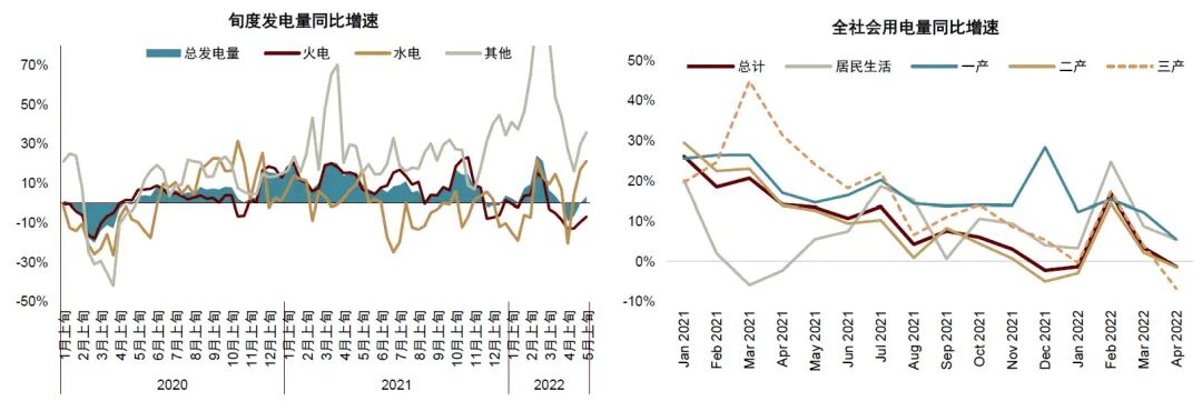 图表: 发电量受疫情拖累,但是水力发电超过预期;疫情期间制造业生产活动与服务业经营受到较大拖累