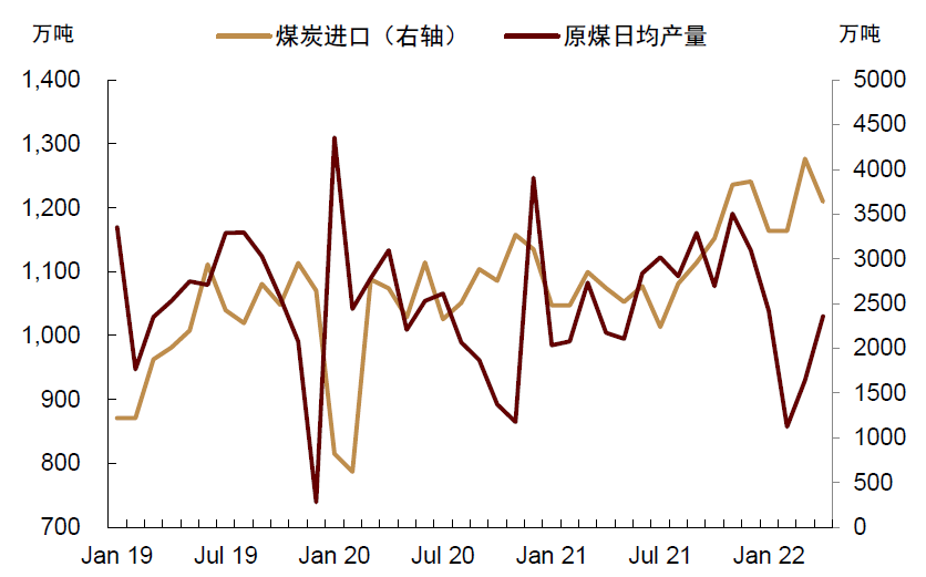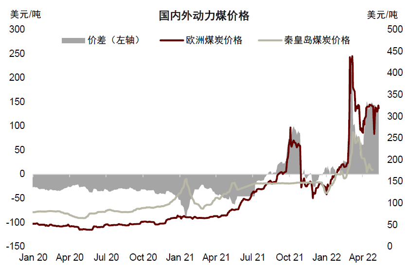 在国内,自去年四季度以来煤炭增产增供持续加码,原煤生产强度一直保持在日均1200万吨以上,有效缓解了煤炭紧缺的情况。面对近来外部风险持续升温,国常会要求保能源安全,落实地方煤炭产量责任,调整煤矿核增产能政策。国家积极引导中长期合同煤炭价格运行在合理区间 ,并着力提升长协覆盖度与执行率,避免了煤炭价格出现大幅波动和上涨。(详见我们于2022年5月29日发布的研究报告《全球煤炭:国内外价格倒挂或将延续》)