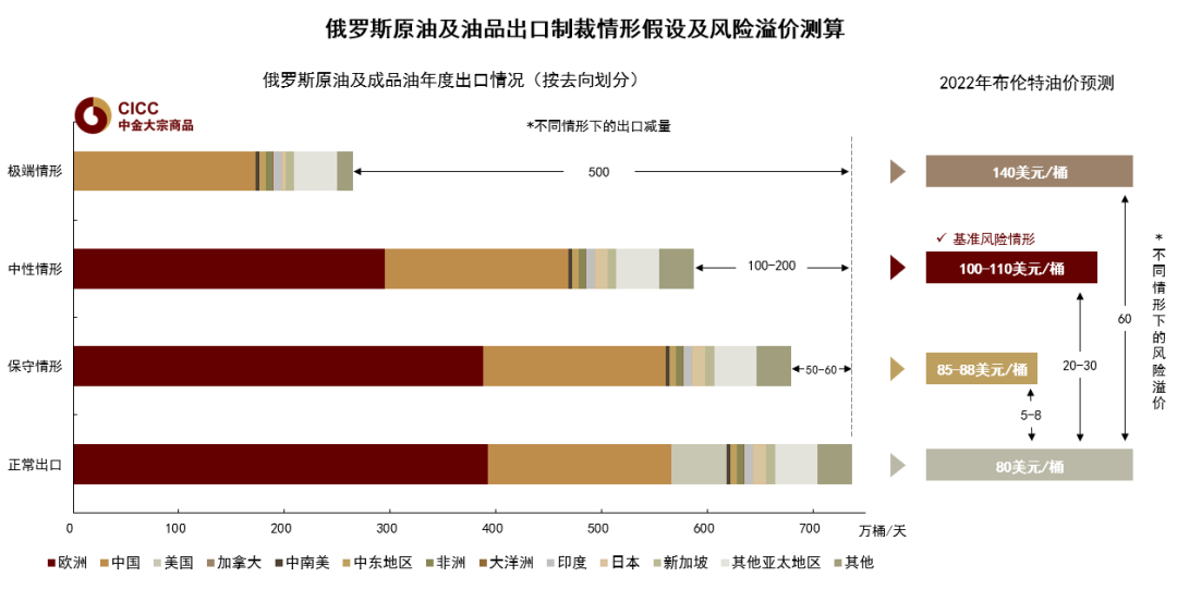 图表: 俄罗斯原油及油品出口制裁的三种情形假设及风险溢价测算