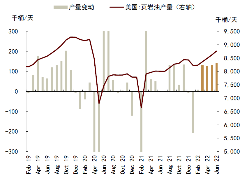 时至2022年中,除了IEA在3月初释放6000万桶石油战略储备为供给侧提供了短时宽松,地缘冲突带来的俄油断供担忧、OPEC+减产基准并未如期上调、利比亚石油意外减产等,均造成了供应侧的约束放松力度不及我们的预期。而北美页岩油产量则如期在新钻油井的支撑下快速释放,我们判断美国原油产量预计将于今夏回到疫情前水平,并将和OPEC共同成为2022年全球石油供应修复的核心支撑。此外,并未纳入我们供需预测基准情形的伊朗原油供应的释放情况也尚未有定数,我们仍提示若其得以重返市场,或将对俄油供应风险形成较强缓冲。