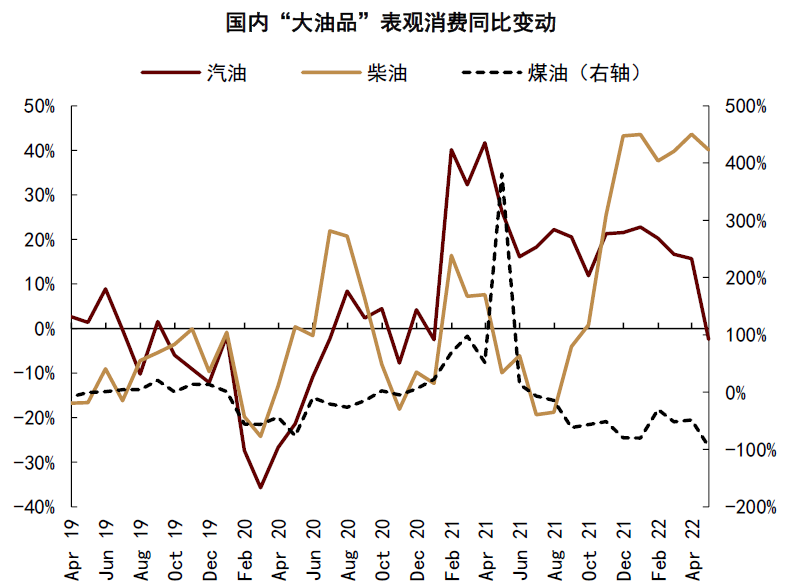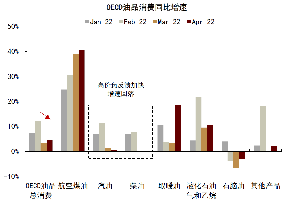 ► 海外油品终端消费的“负反馈”开始显现,或将在2H22加快需求增速下滑
