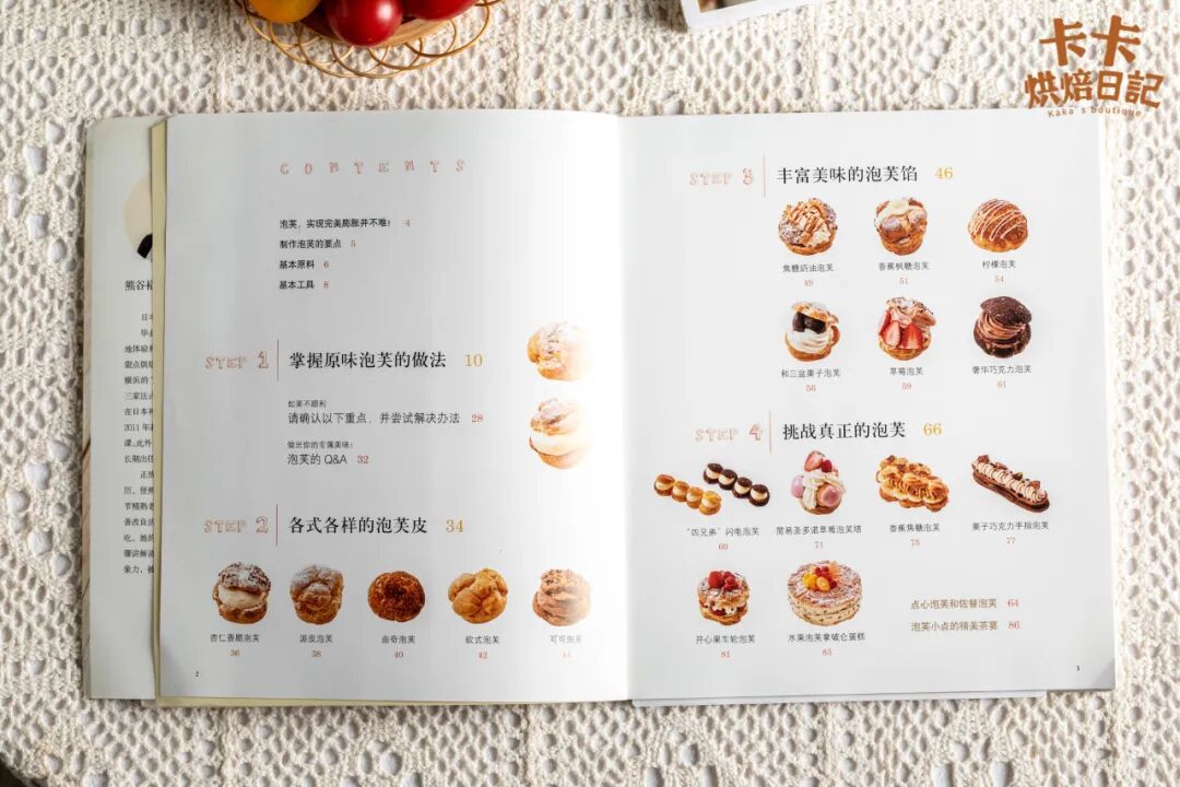 日本人气甜点师熊谷裕子的这两本书,像少女心炸裂的手账,一打开就关不上了,越看越有意思。书中有大量的糕点图鉴和制作步骤,很吸人眼球,连我读小学的侄女都十分喜欢。看完《好吃的泡芙》会发现,原来泡芙家族有这么多可可爱爱的成员。除了原味泡芙、熊谷老师还教授各种泡芙皮、泡芙馅、和“泡芙明星”的做法。食谱的展开循序渐进,先是基本款,接着在面糊中添加配料,再升级装饰和风味,最后带读者挑战蓝带级别的磅蛋糕。