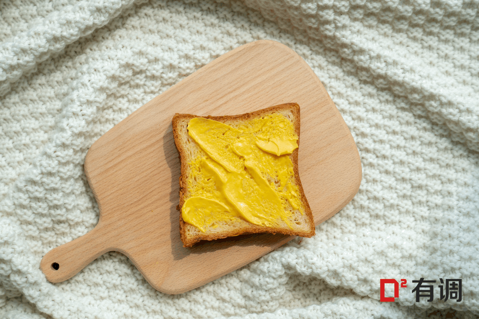 不像传统咸蛋黄酱那么具有颗粒感,这款质地偏慕斯,更像是流沙包内陷放凉了的口感,味道上偏甜口一点,抹面包很细腻,个人很喜欢。