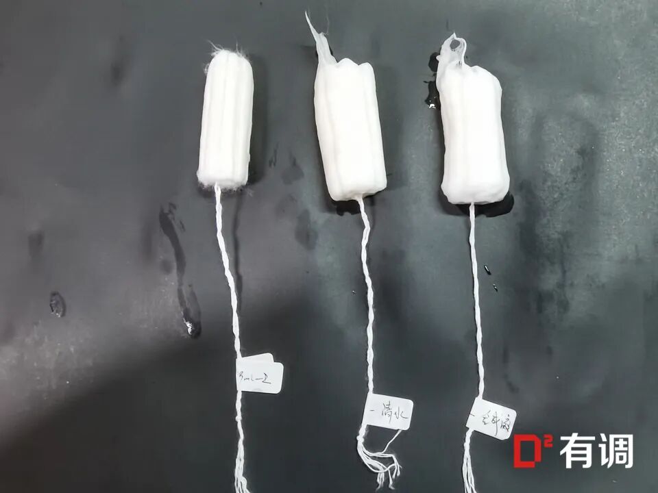 而所有非圆柱形卫生棉条(高洁丝、purer),无论是干燥状态还是吸液状态,都未发现肉眼可见的棉絮。
