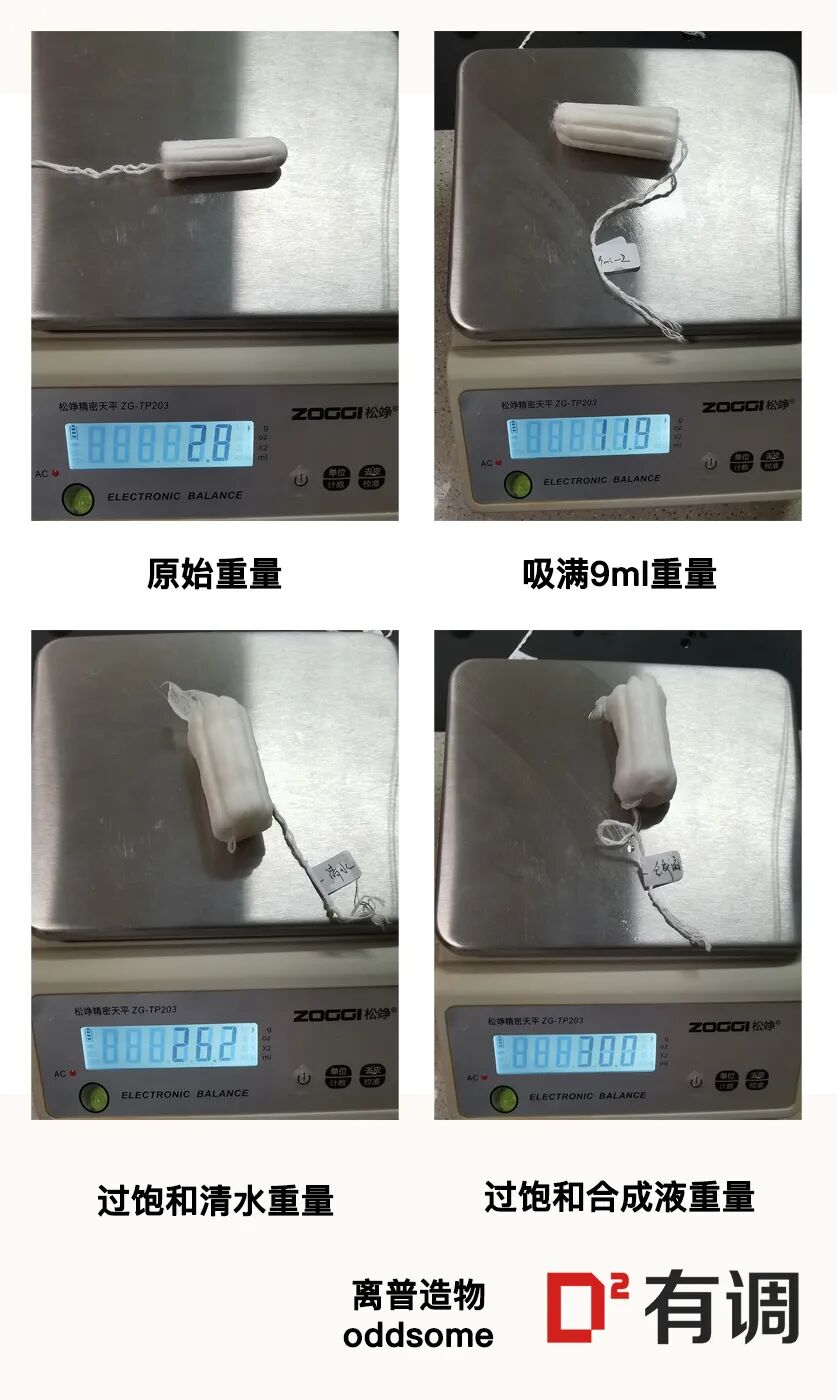 但这种过饱和浸泡的实验方法,我们认为和棉条的真实使用情况是有较大偏差的。