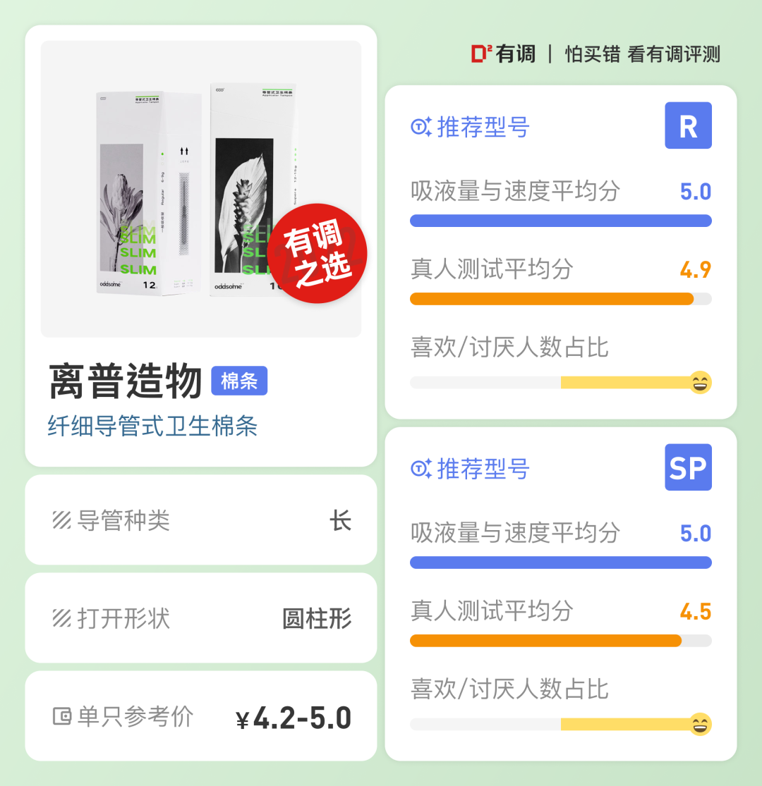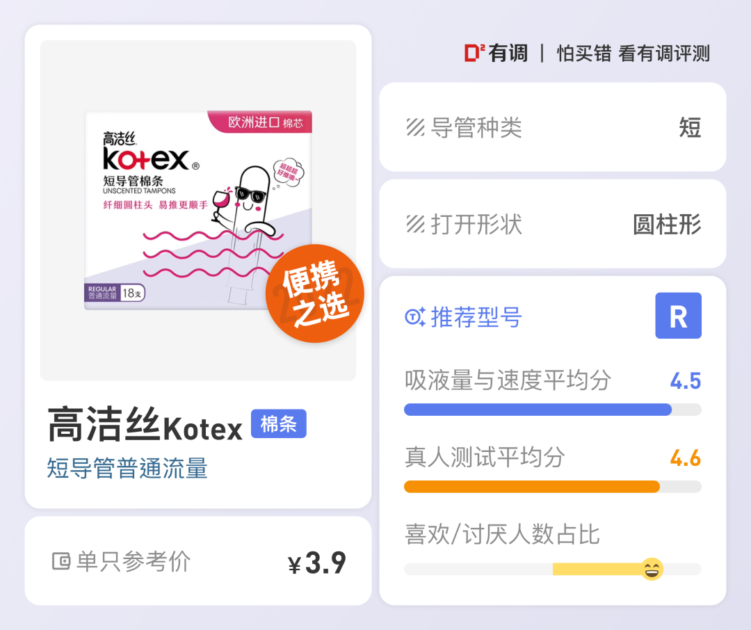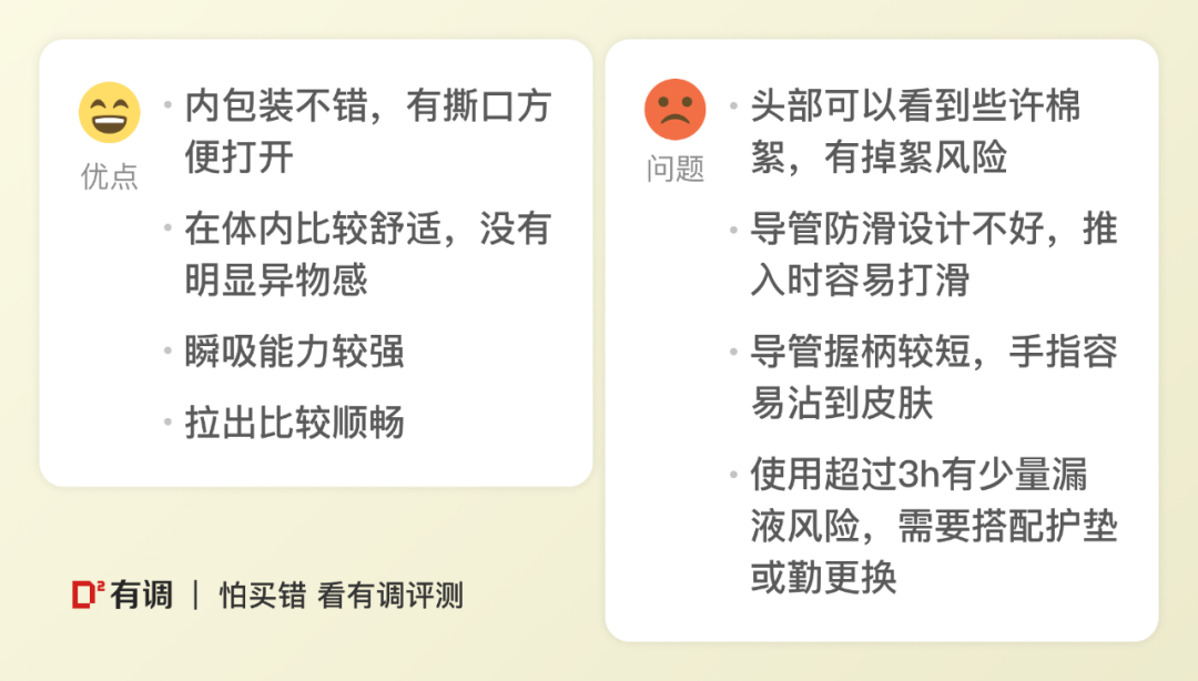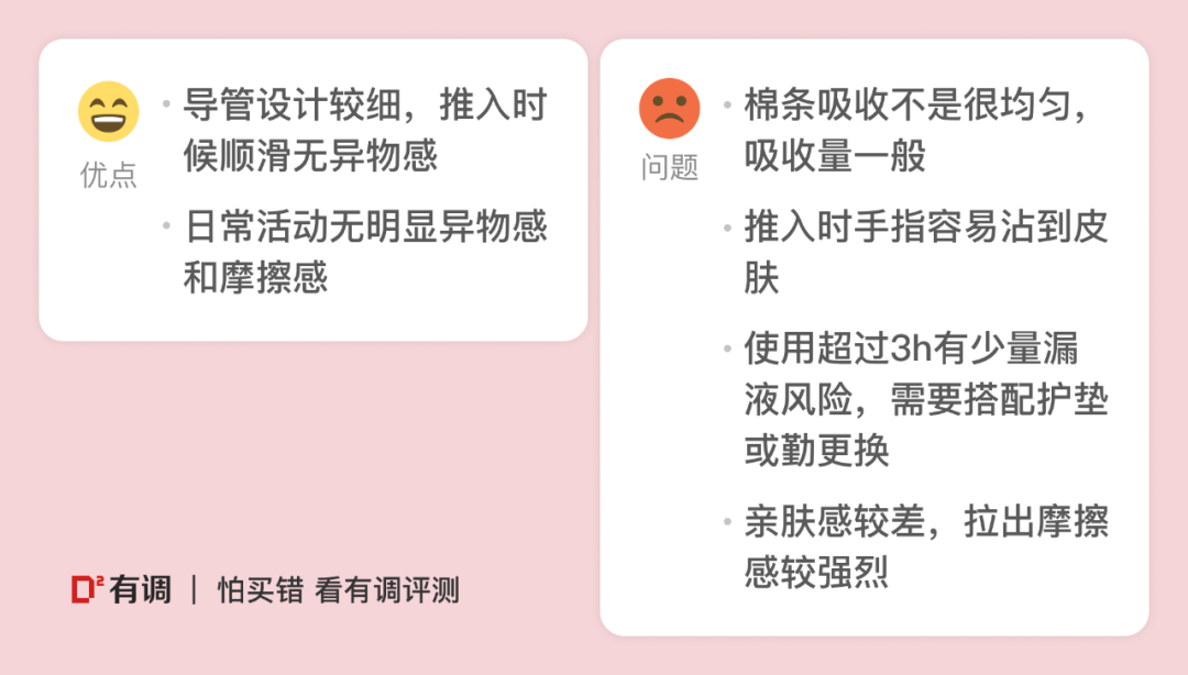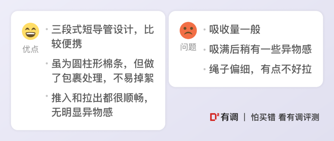 具体测试环节及打分结果可以参照棉条评测报告。