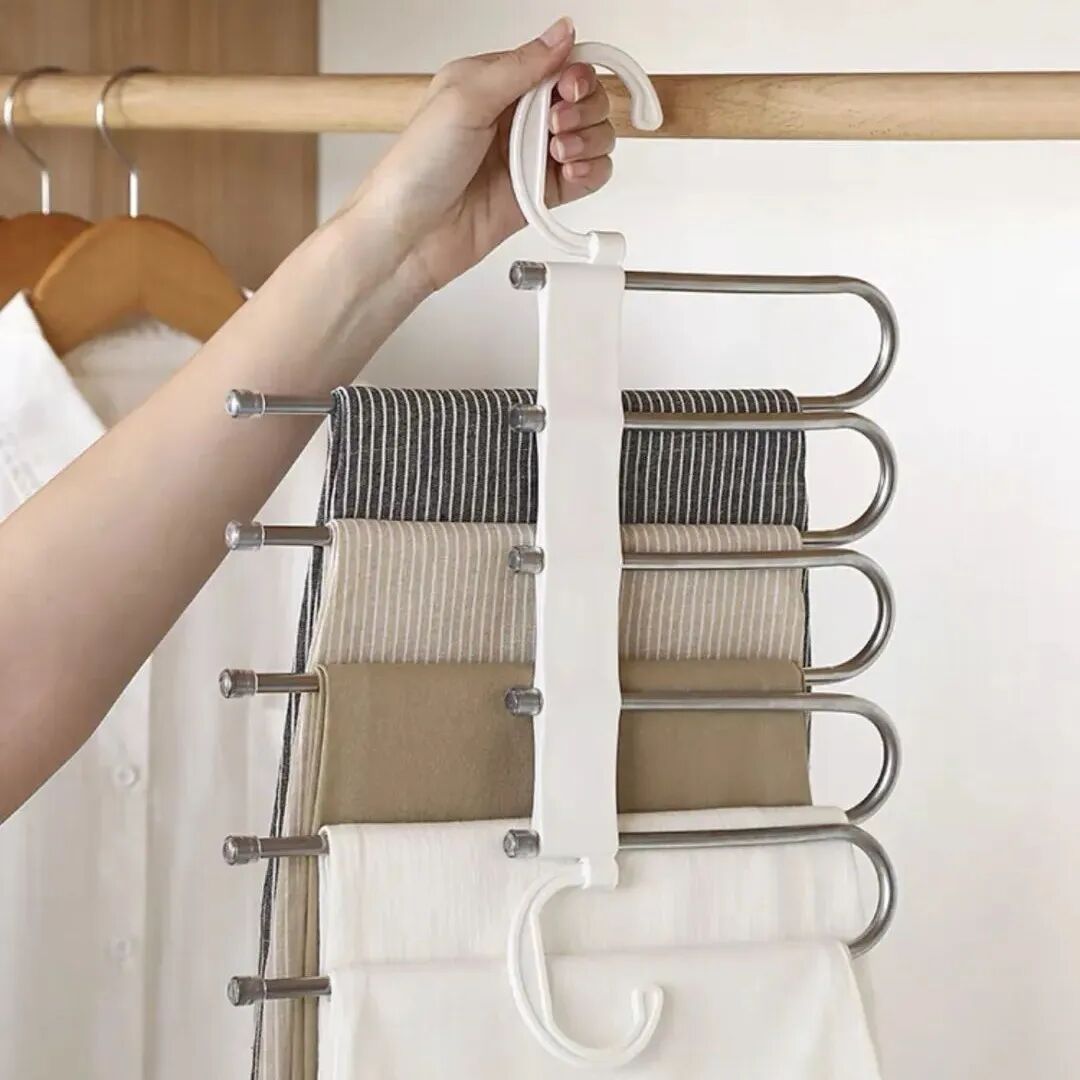 与普通衣架相比,鹅型裤架这种半开放式设计,用来挂裤子或者围巾一类的更省劲方便。衣架末端有一个小弯曲,所以不会发生一侧倾斜、裤子挂不住的情况。