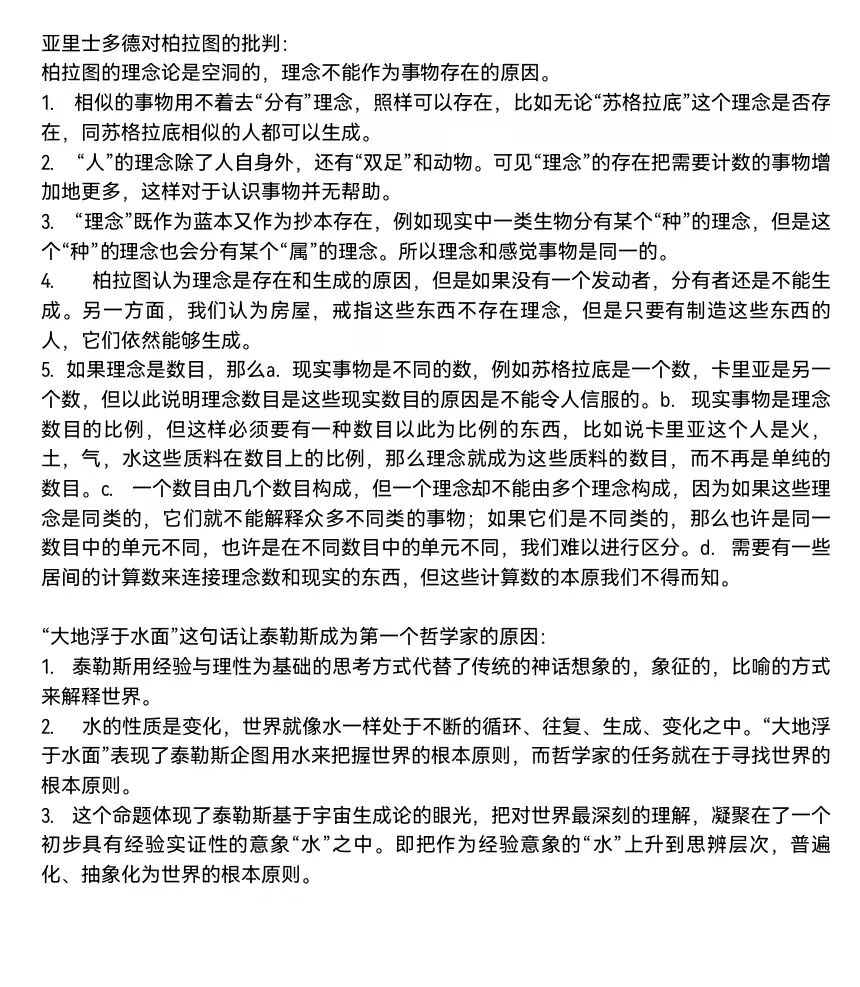 可以看见这样的总结性的答题训练在学习中是必不可少的,如果不提前去要求自己梳理哲学史逻辑脉络、寻找问题意识,很容易在一些富有创新性的题目面前败下阵来。