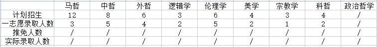 2019年北师大哲学专业各学科录取情况表
