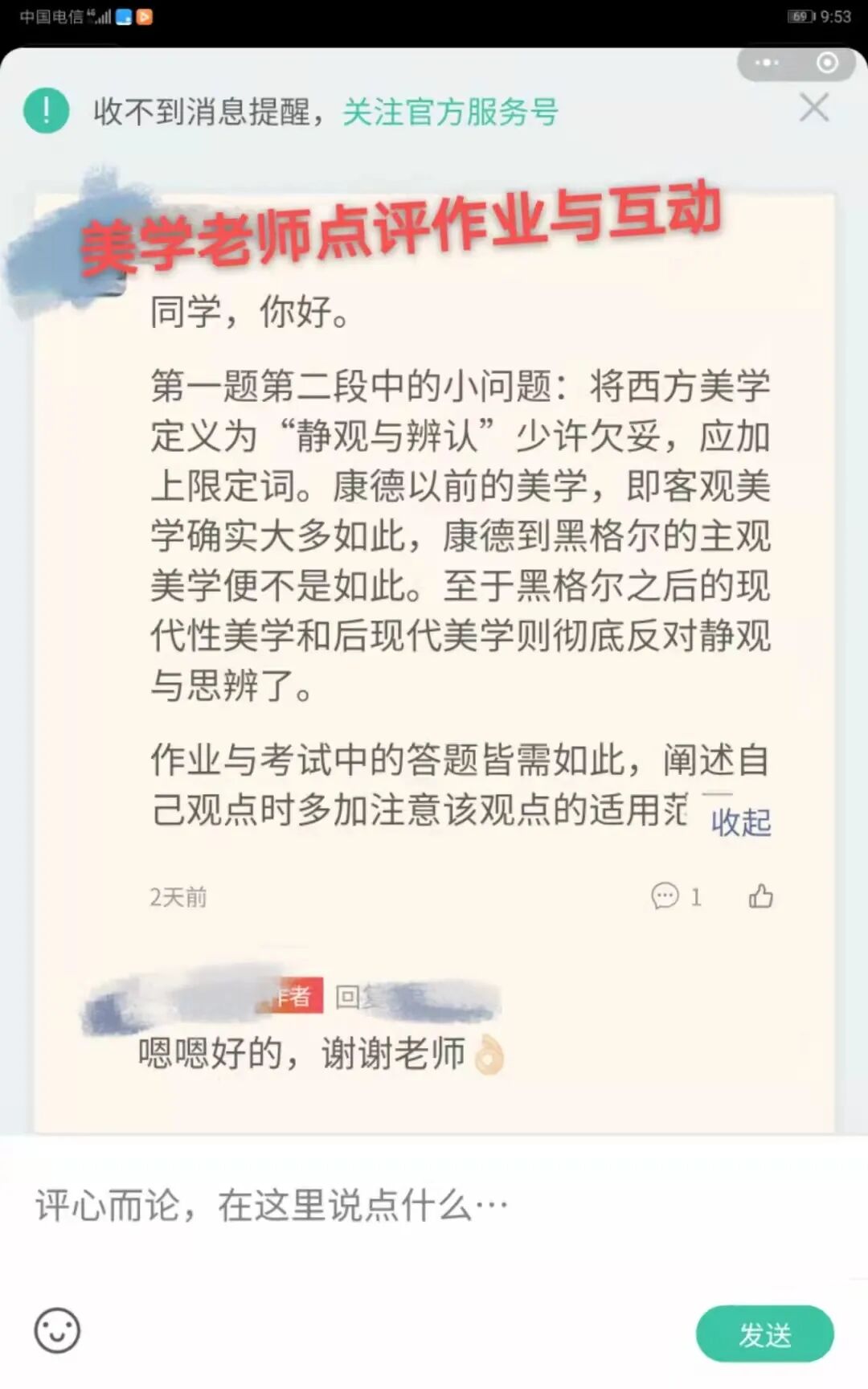 右滑查看老师作业批改