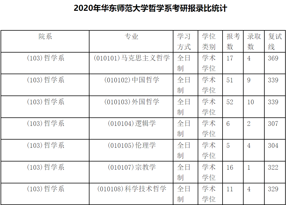 哲学喵:由统计数据可见,19年报录比为8.3,20年报录比则为4.6大幅下降,但到了21年报录比又略微上升为5.8,可见同济这三年的报录比不稳定。尤其由于这三年逻辑学、伦理学和宗教学报考人数大幅度波动,考生在报考该学校时应充分了解当年竞争信息,谨慎地做出选择。