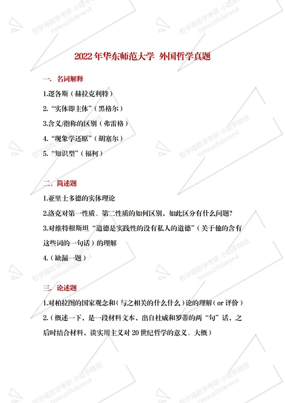 *2022年华东师范大学外哲真题 哲学喵回忆版