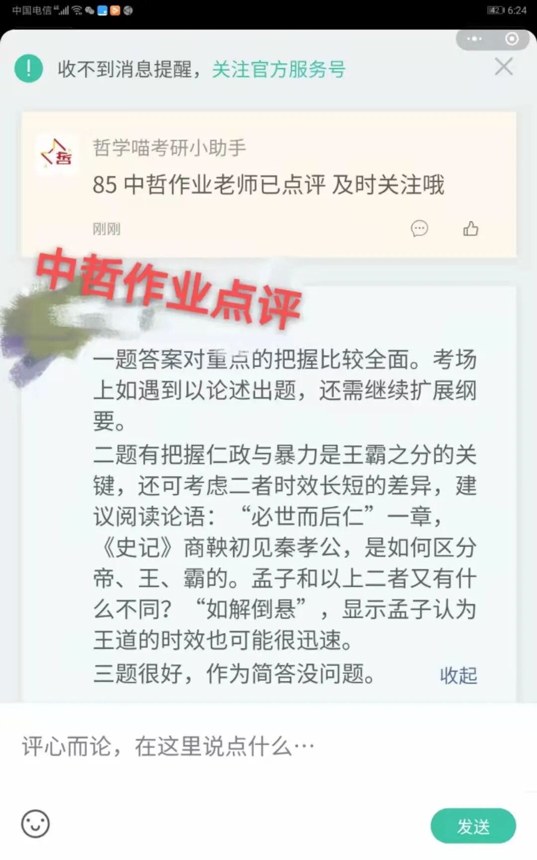 真题部分我报了哲学喵的真题课。通过老师带着梳理,我渐渐形成了答题思路,这也是我仅仅背诵不到两遍也能做好专业课的重要原因。