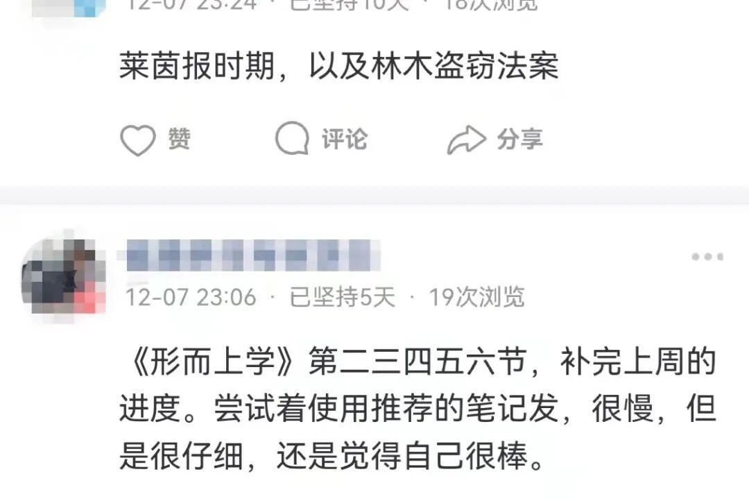 前期不少同学会对如何做笔记产生疑惑。关于这一点,我认为不必过早进行笔记梳理。前期主要集中在阅读和理解上,可以在书本段落旁边提取大意,也方便后续的复习。在尚未获得彻底的理解之前,我们所做的笔记难免会遇到主次不分、不知所云的问题。