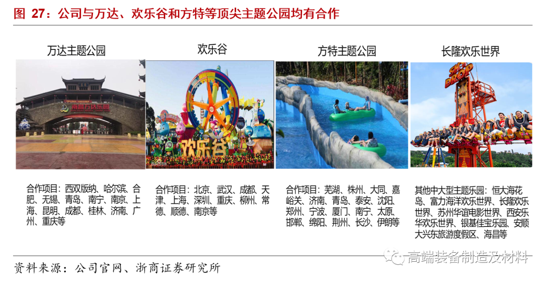与国内顶尖主题公园广泛合作,高端品牌形象受认可。经过在大型游乐设施制造行业的长期积淀,公司在技术、产品及服务方面的整体实力得到极大提升,目前已成为国内大型游乐设施的主要生产企业之一,行业地位较高。凭借高品质的产品和优质的服务,公司的高端品牌形象获得了下游客户的广泛认可,赢得了较高声誉。公司作为中国游艺机游乐园协会及广东省特种设备行业协会副会长单位,国内与万达、欢乐谷、方特乐园等中大型主题公园展开广泛合作。