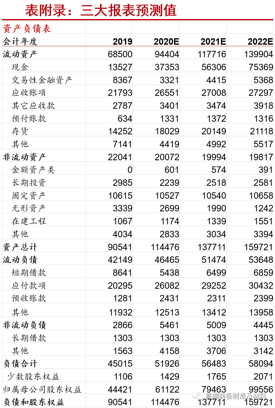 盈利预测、估值与目标价、评级 预计2020~2022年公司净利润为158/183/201亿元,同比增长41%/16%/10%,PE为13/11/10倍。 我们看好公司海外市场突破,未来有望比肩于美国卡特彼勒,成为全球工程机械龙头。公司未来3年业绩确定性较高,我们给予公司2021年15倍左右PE,6-12月目标市值为2700亿元。维持“买入”评级。 关键假设 1)预计2021年海外需求有望共振,疫情后将迎全球基建高峰期。 2)预计2021-2025年,公司海外业务有望保持20-30%左右增长,高于国内增速。 3)预计公司海外挖掘机市占率将逐步提升。 我们与市场的观点的差异 1)市场对公司海外业务开拓信心不足;我们认为未来5-10年为公司海外业务加速期,公司海外业务收入占比有望达50%左右。海外业务的高增长,有助于平抑国内周期波动,进一步提升公司全球市场份额、全球品牌影响力。 2)市场担心公司海外业务拓展受品牌知名度、销售和服务网络等制约;我们认为公司在品牌、服务和渠道建设、营销手段创新方面,具有核心竞争力,是极少数能将服务竞争力复制到海外的中国工程机械企业。以挖掘机为例,2020年上半年,公司在印尼、泰国、菲律宾等国家挖掘机市占率已为当地全市场第一名;在马来西亚、南非等地区已为当地前三名;公司海外市场份额正在迅速提升过程中。 3)市场担心公司在欧美国家市场占有率不能快速提高,影响公司全球市占率的提升。我们认为可以跟踪公司挖掘机在海外的市占率变化,海外拓展路径可以分别重点跟踪:东南亚国家、其余“一带一路”重点国家、欧美国家。公司混凝土机械已为全球第一,我们重点跟踪挖掘机。挖掘机是市场容量最大的工程机械品种。如果公司挖掘机市占率在东南亚国家达10-20%,其余“一带一路”国家达10%,欧洲国家达5-10%,美国达5%,则公司挖掘机海外市占率有望达到10%。 股价上涨的催化因素 挖掘机、起重机市场份额继续提升;海外市场占有率持续提升。 投资风险 地产投资超预期下滑;国际局势发生对中国的重大不利的变化;海外疫情再次失控风险。 |