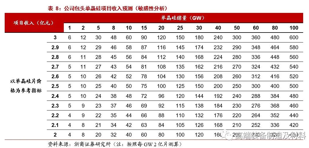 2019年5月公司公告在包头建年产5GW单晶硅拉晶项目,拟投资30亿元,2019年12月起分批投产;预计达产后可实现年均收入27亿元、净利润2.8亿元。