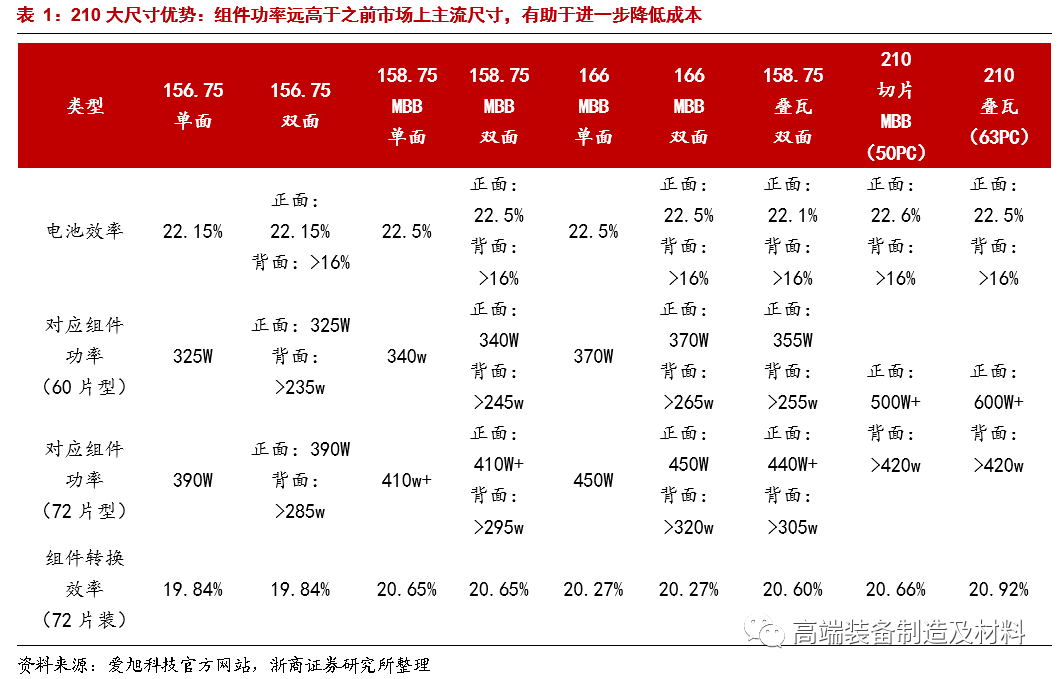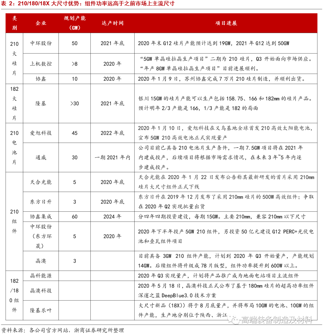 除中环外,天合光能、爱旭、东方日升、通威、上机数控、宁夏小牛、京运通等众多厂商也开始着手布局210尺寸产品。