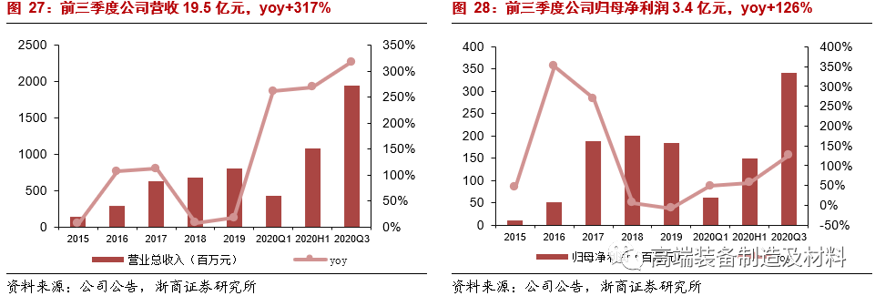 截止2020年三季度末,公司在手订单合计59亿元,同比增长131%,其中半导体设备订单4.1亿元。