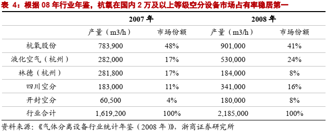 4.杭氧设备业务:进口替代典范,技术领先,市场份额达50%
