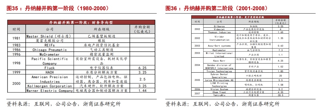 2)更少但更好的并购(2001-2008),此阶段公司发展补强收购、邻近业务收购以及新平台收购,同时开始从行业角度筛选具有高增长特点的行业与该行业中的龙头公司或利基公司。值得注意的是该阶段公司开始逐渐切入生命科学、诊断等领域;