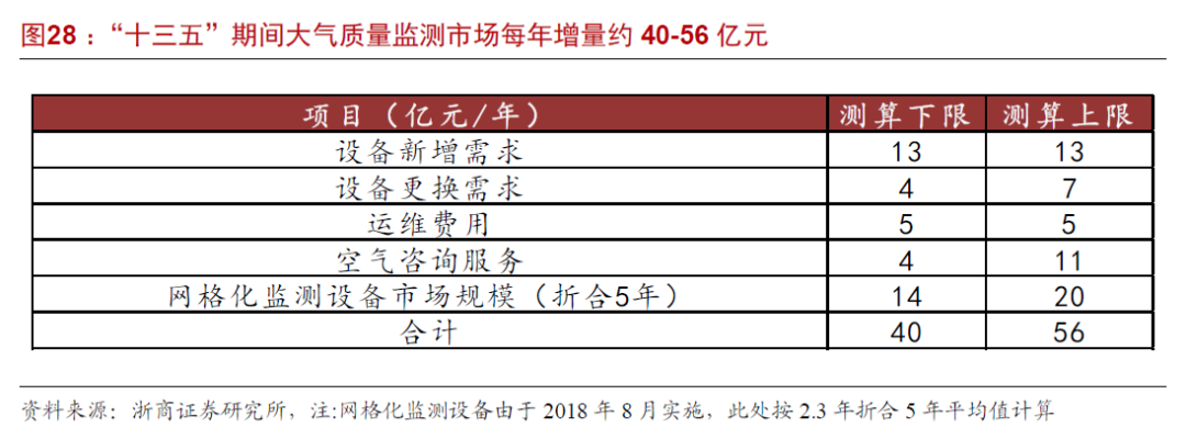 2)国控点新建、更换设备需招标,假设中并未按招标金额,新建/更换单台设备统一按100万/台测算,运维服务按每个点位运营成本约5万元/年进行测算,“十四五”期间每年约有5亿元的运维服务市场空间(1万个点位含国控点)。