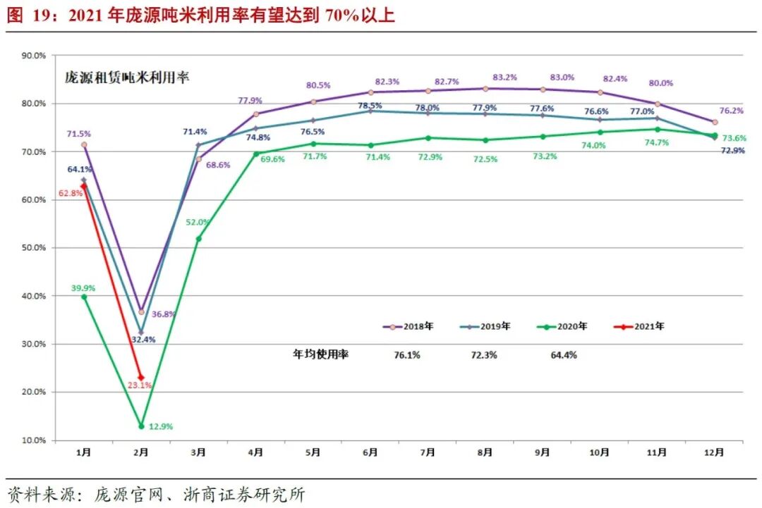 3)悲观假设:2021年、2022年庞源指数为1050点、1000点,全年收入确认的订单价格分别为1200点、1160点,全年的吨米利用率分别为68%、70%,全年新增设备投资额为18亿元、20亿元,新增设备均价为85万元、90万元。2019年、2020年全年收入确认的订单价格中枢为1308点、1330点。