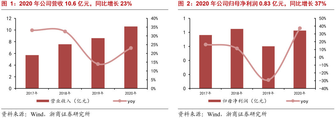 附录3:2020年,公司实现收入10.6亿元,同比+23%;归母净利润0.83亿元,同比+37%。
