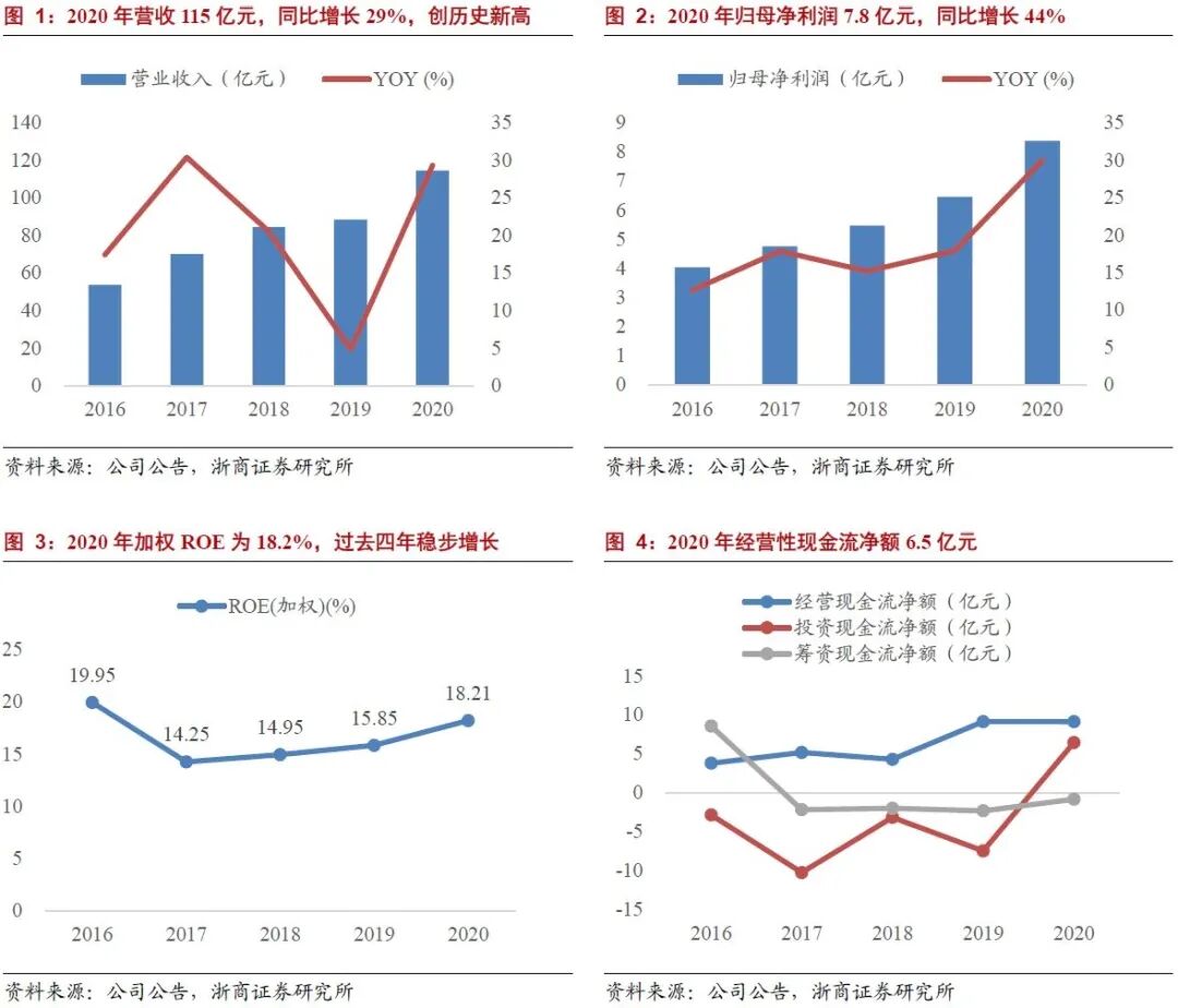 事件 公司2020年实现营业收入114.9亿元,同比增长30%;归母净利润8.4亿元,同比增长31%;扣非净利润7.8亿元,同比增长44%;报告期末总资产81亿元,较期初增长29%;公司每10股派息4元。 |