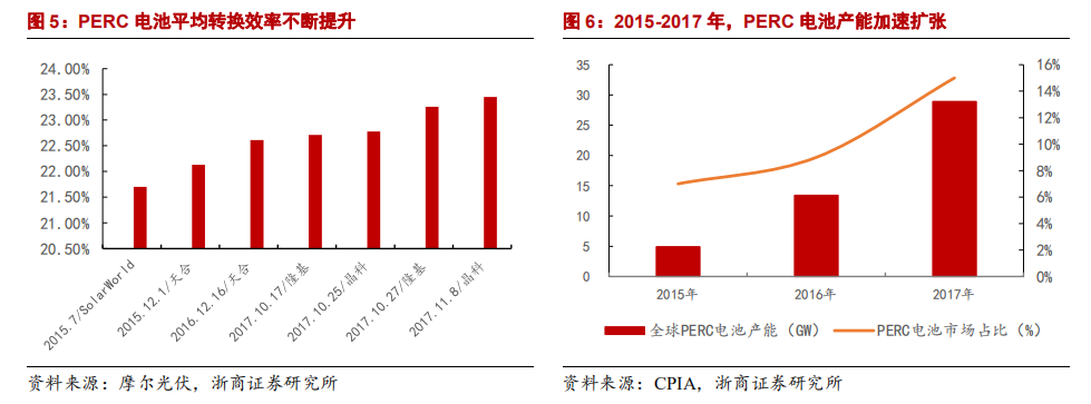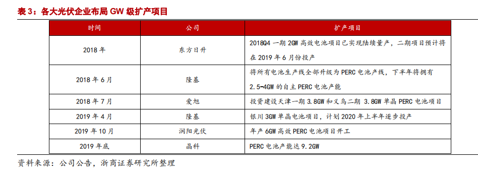 PERC为目前市场主流技术路径,仍具备几年生命期,但产线扩张即将进入尾声。