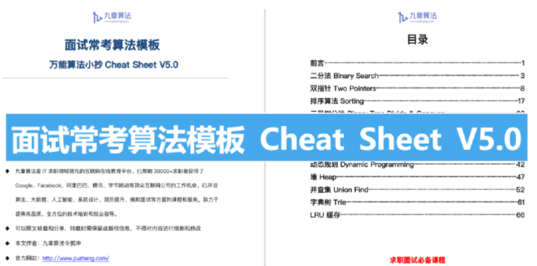 · ACM大佬整理:面试常考算法模板cheatsheet V5.0