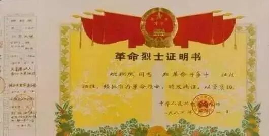 1983年,国家给姚桐斌颁发了“革命烈士”证书。