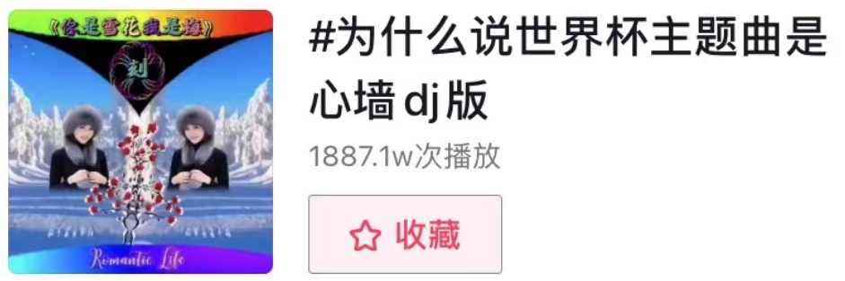 世界杯开始后,“世界杯主题是心墙dj版”的词条还上了热搜。