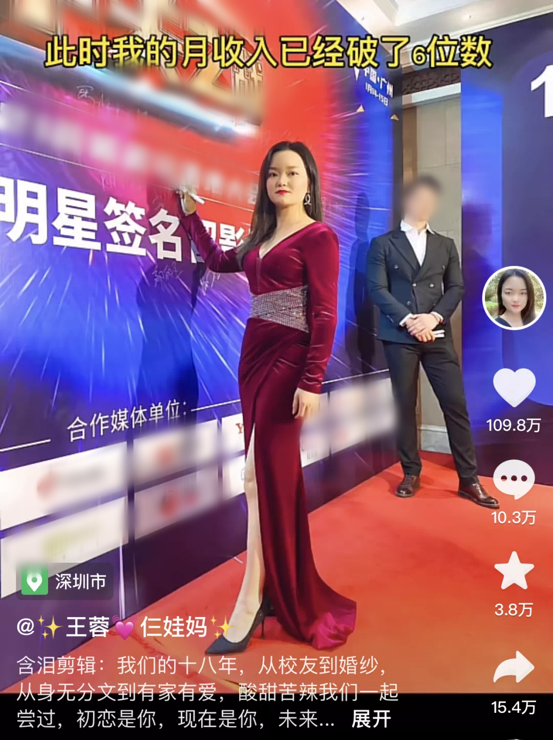 照顾3个孩子、做饭、拍视频、剪视频、每天长达几小时的直播带货,工作量不比普通上班族少。刚开始很多人都说她是恋爱脑,后来发现她是小富婆,最后才明白:不对,人家是真正的工作狂和生意人,精准掌握了流量密码,拿捏了当代女孩的痛点。#全网都在模仿王蓉做饭#的话题登上热搜,话题累计播放量超过1500万。人间烟火,三餐四季,氛围感、沉浸式、情绪价值,被她玩得明明白白。据相关数据工具显示,王蓉仅4个月就涨粉381.6万,目前粉丝数量近700万。而且王蓉的粉丝里,超过90%为女性,18岁~23岁年龄段占比超过50%。这些女孩有头脑,有主见,追求自我价值,其中很多人对恋爱婚姻感到迷茫,也容易被姐姐们引导。优秀独立女性,放弃事业照顾家庭,可喜的是并没有被辜负。老公宠妻,买房写她名,赚钱全上交,认可她的人生价值——