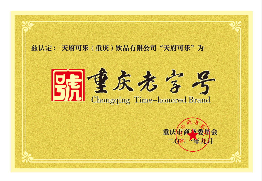 自天府可乐(重庆)饮品有限公司成立了以来,天府可乐不断地推陈出新,扩大市场,打通全渠道运营。天府可乐于2019年获得重庆市非物质文化遗产称号;2021年获得重庆市老字号称号;2022年荣获“重庆优质文旅商品”、“2022年中国饮料工匠品牌”等荣誉称号。