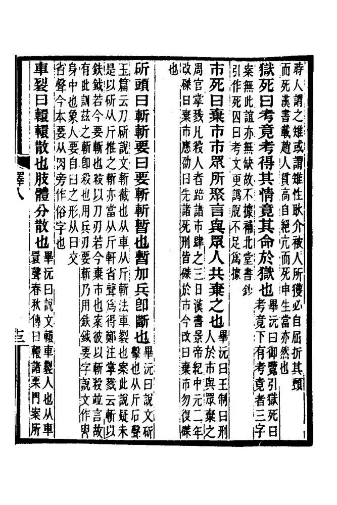 弃市的处死之法,在当时应该十分明确、众所周知,故秦汉史籍不必详载,在数十年来发现的出土律令中也未见直接的规定。现存对秦汉弃市最早的定义,见于东汉末年刘熙所作的《释名·释丧制》。此篇罗列各种死亡的名目,加以解释,其中说:“市死曰弃市。市,众所聚。言与众人共弃之也。”[9] 紧接着又说:“斫头曰斩,斩要曰要斩。斩,暂也,暂加兵即断也。”[10]《释名》区分斫下头颅的“斩”和斩断腰部的“要斩”,将二者与“弃市”分列,显示出弃市很可能采用斩首和斩腰之外的另一种处死方式。