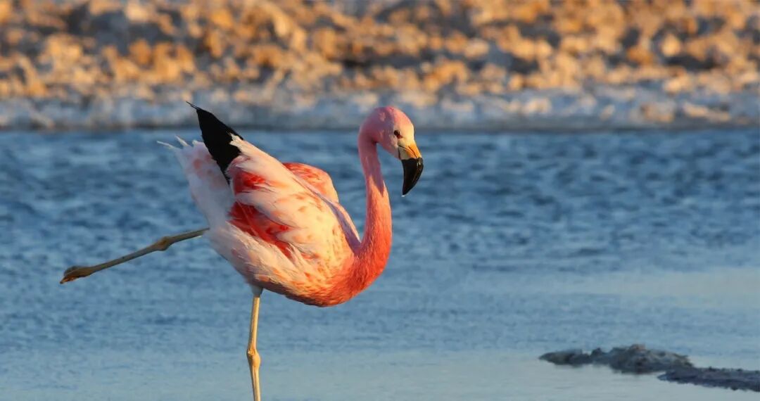 火烈鸟的踪迹总是与盐湖紧紧相连,在阿塔卡马你可以看到智利红鹳、安第斯红鹳、秘鲁红鹳三种火烈鸟,它们总是姿态优雅地寻觅湖水中的虾和浮游生物,神奇的是,它们羽毛的红色正是来源于这些食物中的类胡萝卜素,为景色回馈了一分鲜艳的色彩。