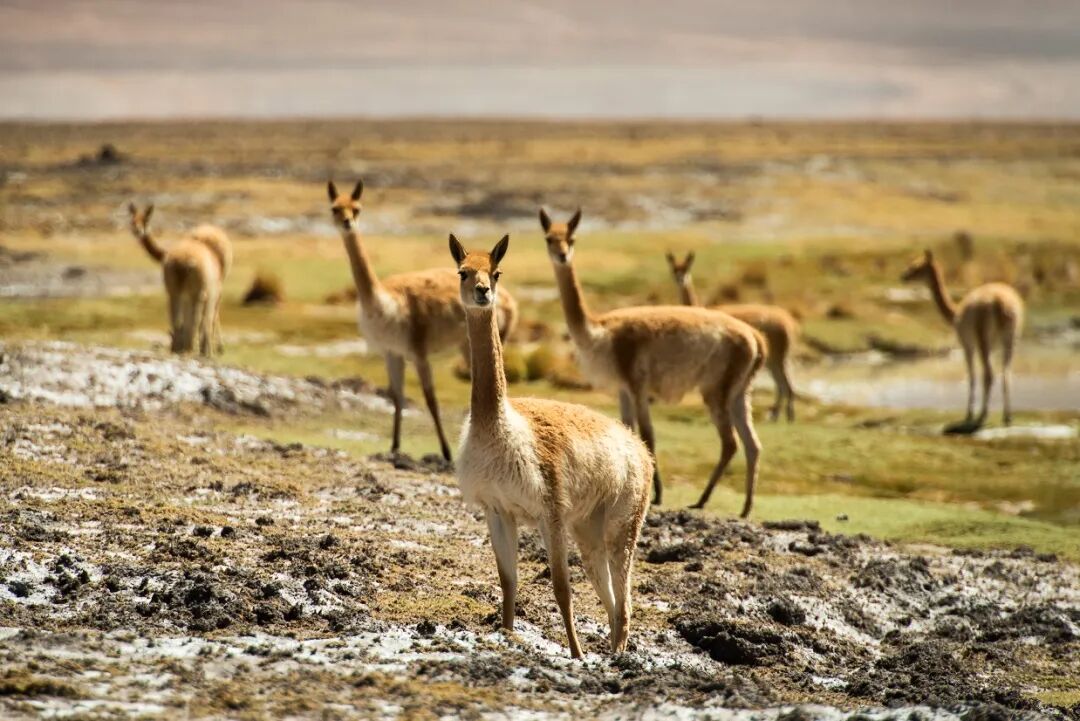 羊驼和火烈鸟是阿塔卡马沙漠的游客最期待的小动物。对于野生的羊驼来说,这片含盐极丰富的高原地区是它们的乐土,它们爱吃这里硬硬的草,舔石头上的盐粒,也喝盐湖里的咸水。