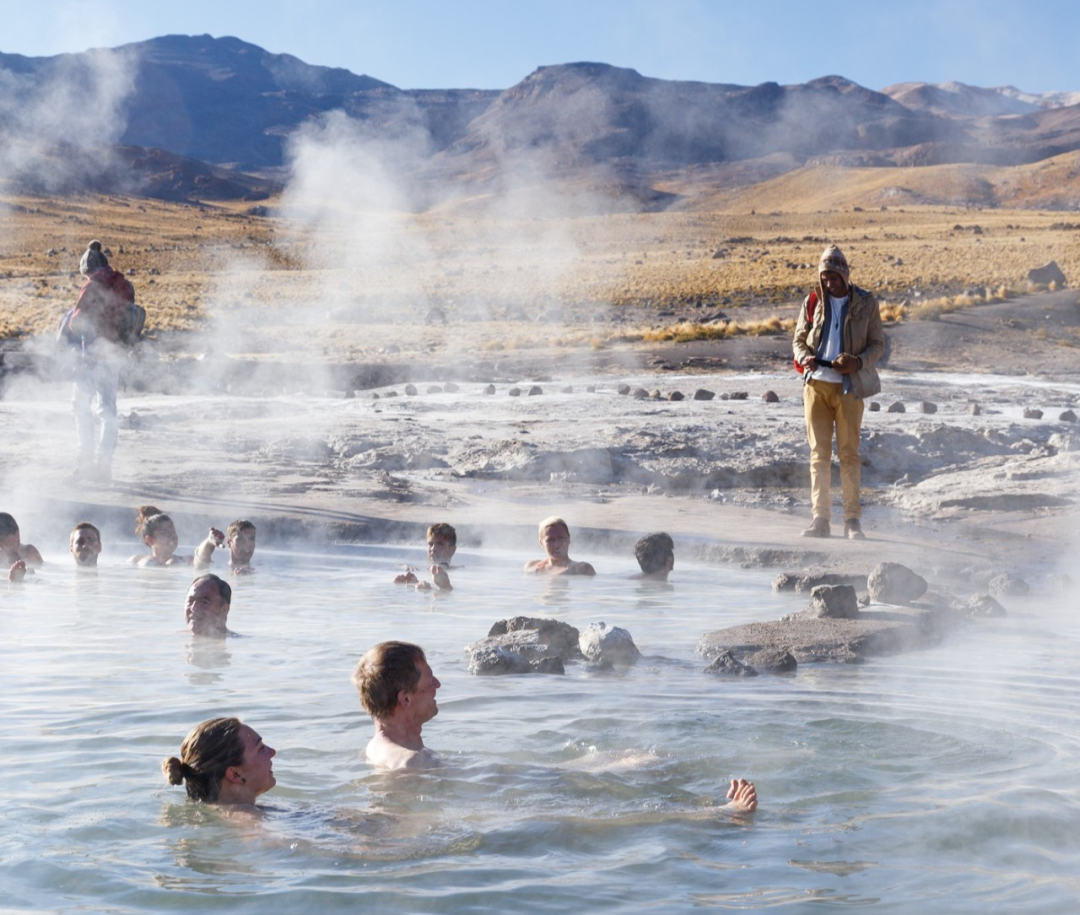 Geyser del Tatio 距离圣佩德罗·德·阿塔卡马 San Pedro de Atacama 一百多公里,是南半球最大的间歇泉群,有八十多个活跃的泉眼。如果能够在日出前抵达这里,就可以看到蒸汽升腾到最高的景象,不过你可能需要凌晨四点就要出发。