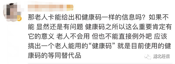 健康码是依大数据技术,进行动态统计和分析,主要作用是识别某个人有没有跟新冠病毒患者有过接触,比如,同乘一架飞机、同坐一趟车,或者来自疫区,都会有所显示,非常便于识别和管理。通过追根溯源,可以快速找到因直接或者间接接触而有可能被感染的人群,并及时采取措施防止病毒传播,所以健康码的作用还是比较大的。 制定这些规定和措施,就是为了老百姓的安全和健康,也是为了百姓生活的便利,希望相关部门和企业,思想要创新,且有创造性的用高科技解决老年人出行之健康码问题,让刷脸、刷身份证、刷乘车卡也能并入健康码大数据,老年人使用健康码难的问题,并“希望相关部门能想得再周全些,别让数字化成为老年人面前的鸿沟”。谁都有老眼昏花甚至耳朵失聪的时候,在科技高速发展的今天,我们更应该关注那些为我们付出了一生辛苦却不懂新科技的老年人。严防严控是根本,既要科学合理加强防疫防控,又要不失温度。健康码的温度在哪?值得我们那些制定规则的人和管理者思考!