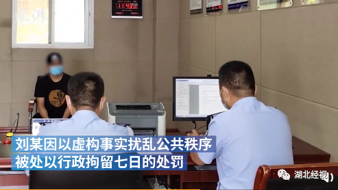 最终,刘某因以虚构事实扰乱公共秩序被处以行政拘留七日的处罚。