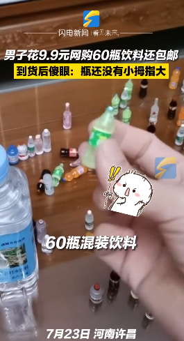 7月23日,河南许昌一男子9.9网购60瓶饮料,还包邮!