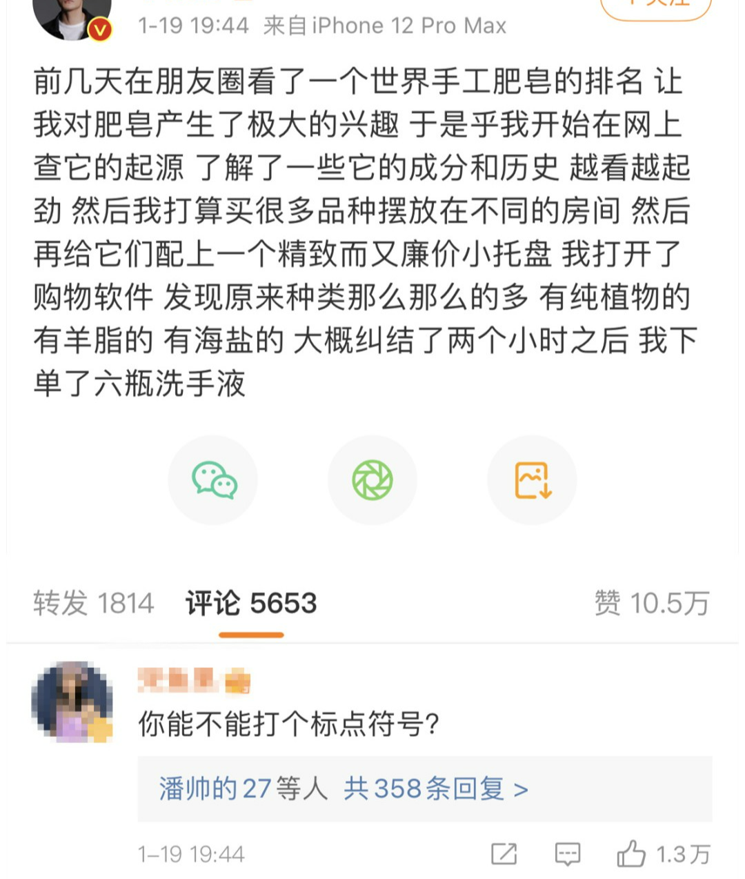 (某位明星因不爱用标点符号被粉丝吐槽)